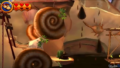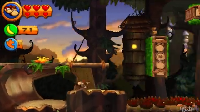 In the area where the three platforms rotate, once the third platform is vertical, jump onto it and grab the grass. Climb up to find a barrel leading to the bonus area.