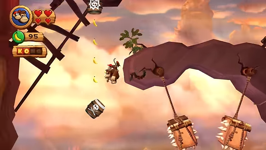 Tap the ground marked "DK" to reveal three platforms. Climb them to reach the puzzle piece.