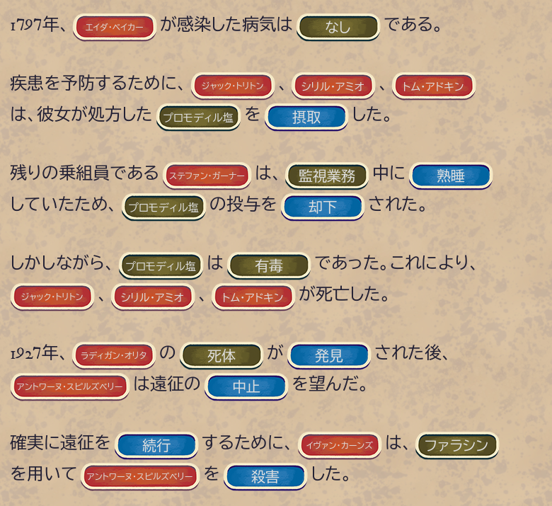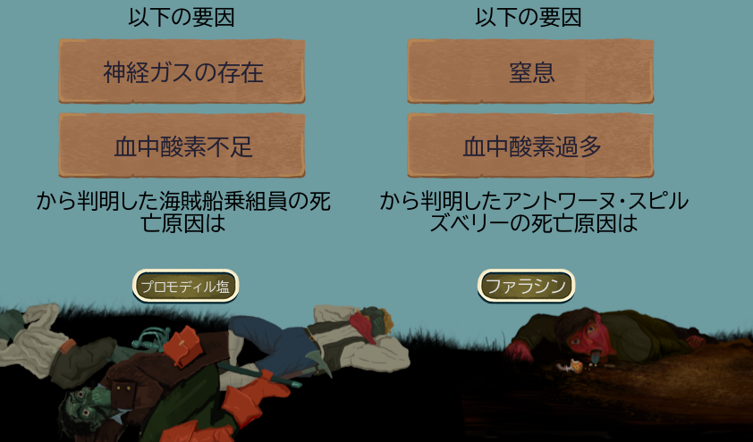 【The Rise of the Golden Idol】DLC第4弾シナリオ3「病と健康」の解答 The Rise of the Golden Idol X Facebook はてブ Pocket LINE コピー 2025.10.06 この記事は約1分で読めます。 推理ゲーム「The Rise of the Golden Idol」DLC第4弾シナリオ3「病と健康」の解答について解説します。 ※ネタバレを含みます。 目次 答えテント死巻物その他リンク攻略ページトップ 答え テント 死 巻物 スポンサーリンク その他リンク 攻略ページトップ The Rise of the Golden Idolの攻略トップ推理ゲーム「The Case of The Golden Idol」の攻略トップページです。どんなゲーム?1 事件現場を探索し、キーワードを集める2 集めたキーワードを使って、問題文を穴埋めしていく3 全て正解すると、次の事件現場へ進む「人...