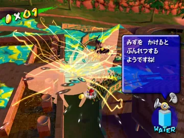- 1階のトイレの奥の個室から水が漏れている。天井に向かってジャンプすると上の階に行ける。